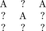 In this configuration, there are two cases, either all the A's lie on the same diagonal:
