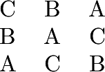 In each case there is only one way to put three B's and three C's as shown in the diagrams: