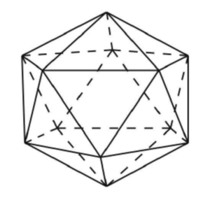 Imagining the icosahedron as having 4 layers. 1 vertex at the top, 5 vertices below connected to the top vertex, 5 vertices below that are 2 edges away from the top vertex, and 1 vertex at the bottom that is 3 edges away from the top.