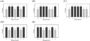 Each of the even numbers $2, 4, 6, \ldots, 50$ is divided by $7$. The remainders are recorded. Which histogram displays the number of times each remainder occurs?