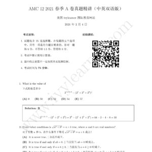 AMC 12 2021 春季 A 卷真题精讲中英双语