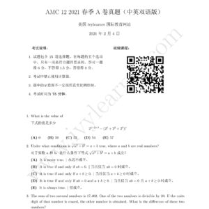 AMC 12 2021 春季 A 卷真题中英双语