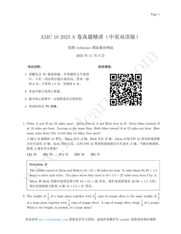 AMC 10 2023 A 卷真题精讲中英双语