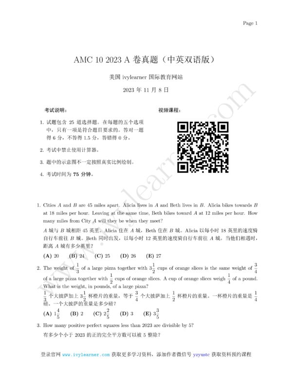 AMC 10 2023 A 卷真题中英双语