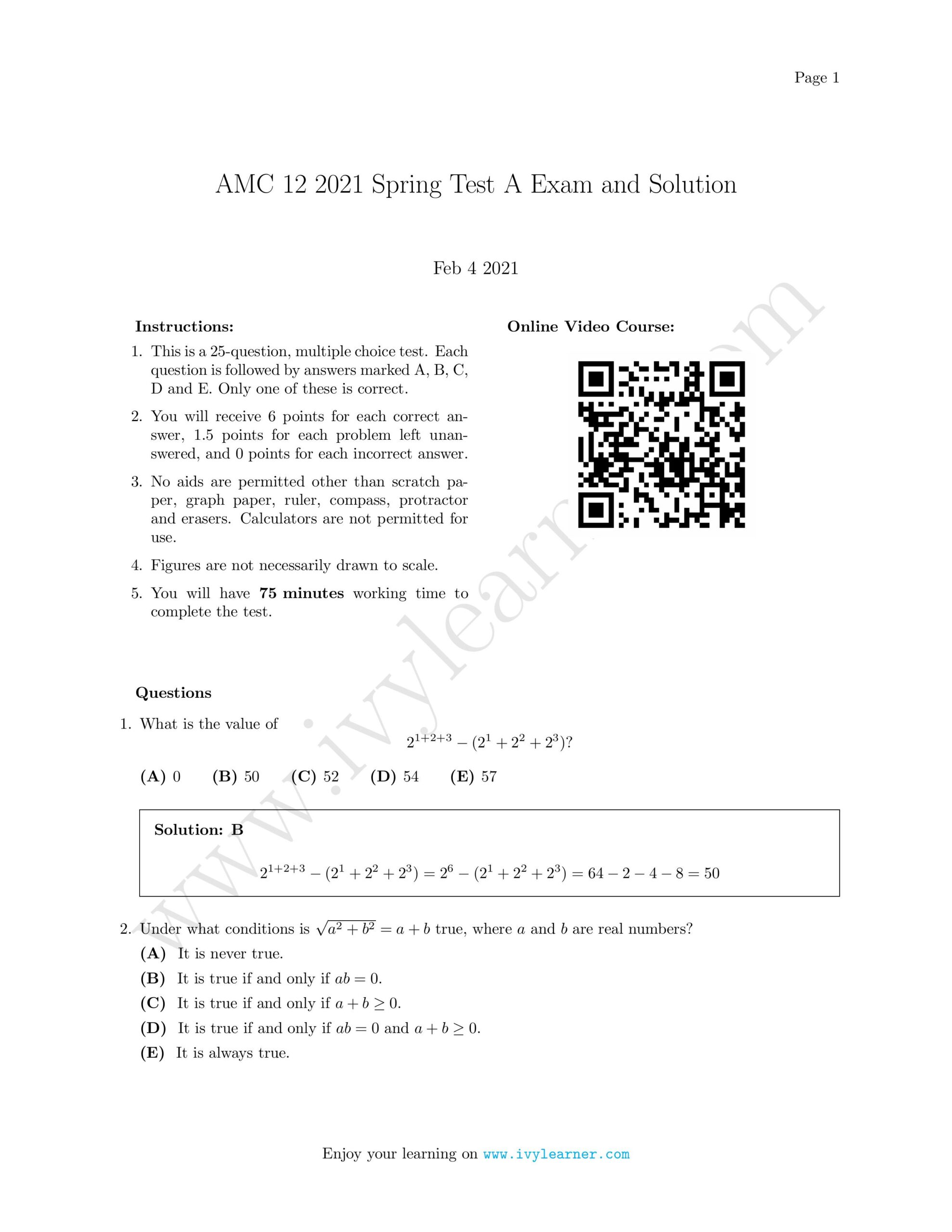 / AMC 12 2021 Spring Test A Exam and Solution