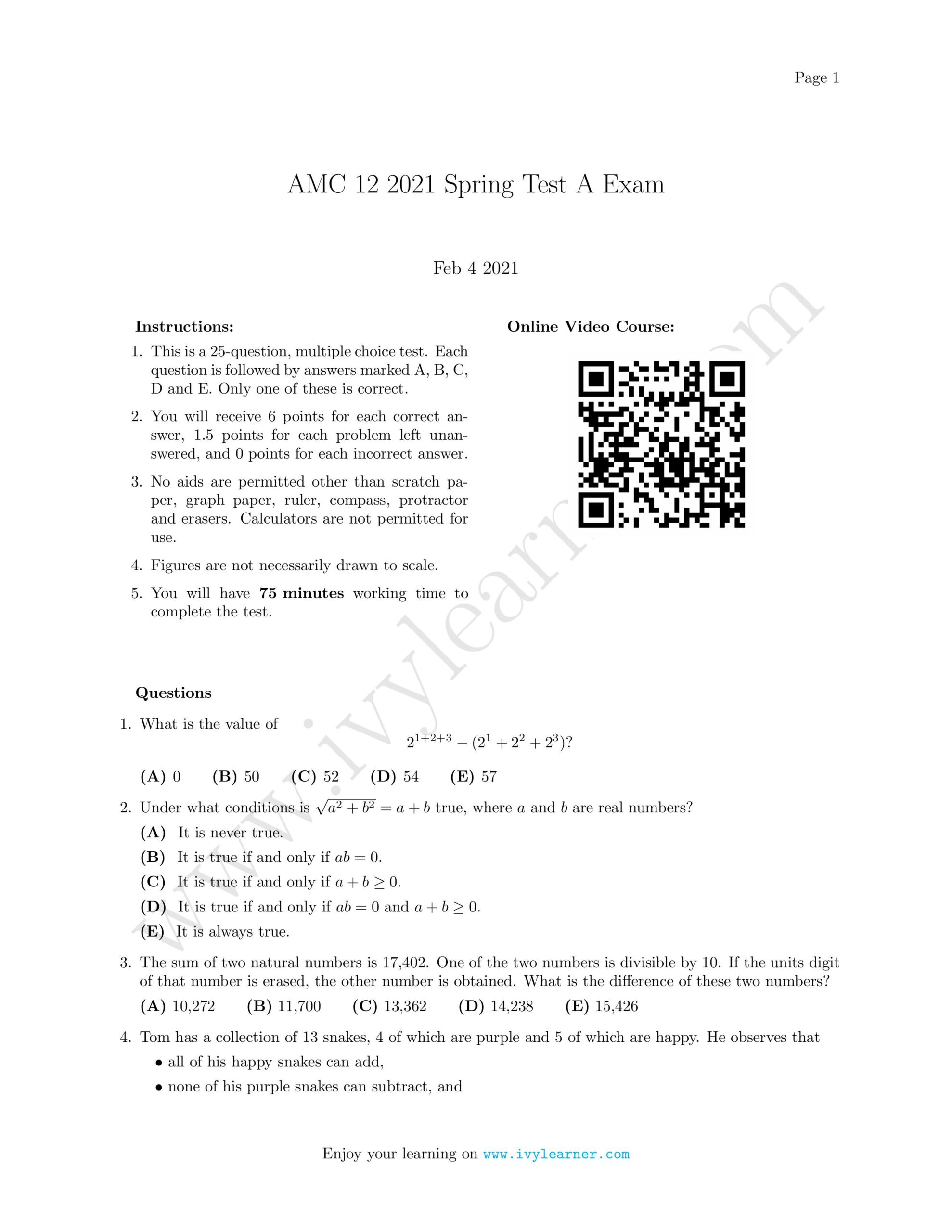 / AMC 12 2021 Spring Test A Exam
