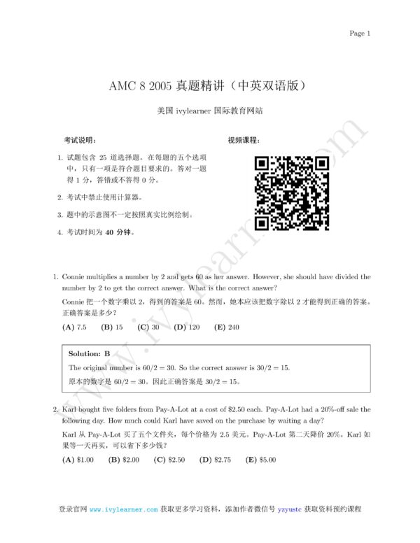 AMC 8 2005 真题精讲中英双语