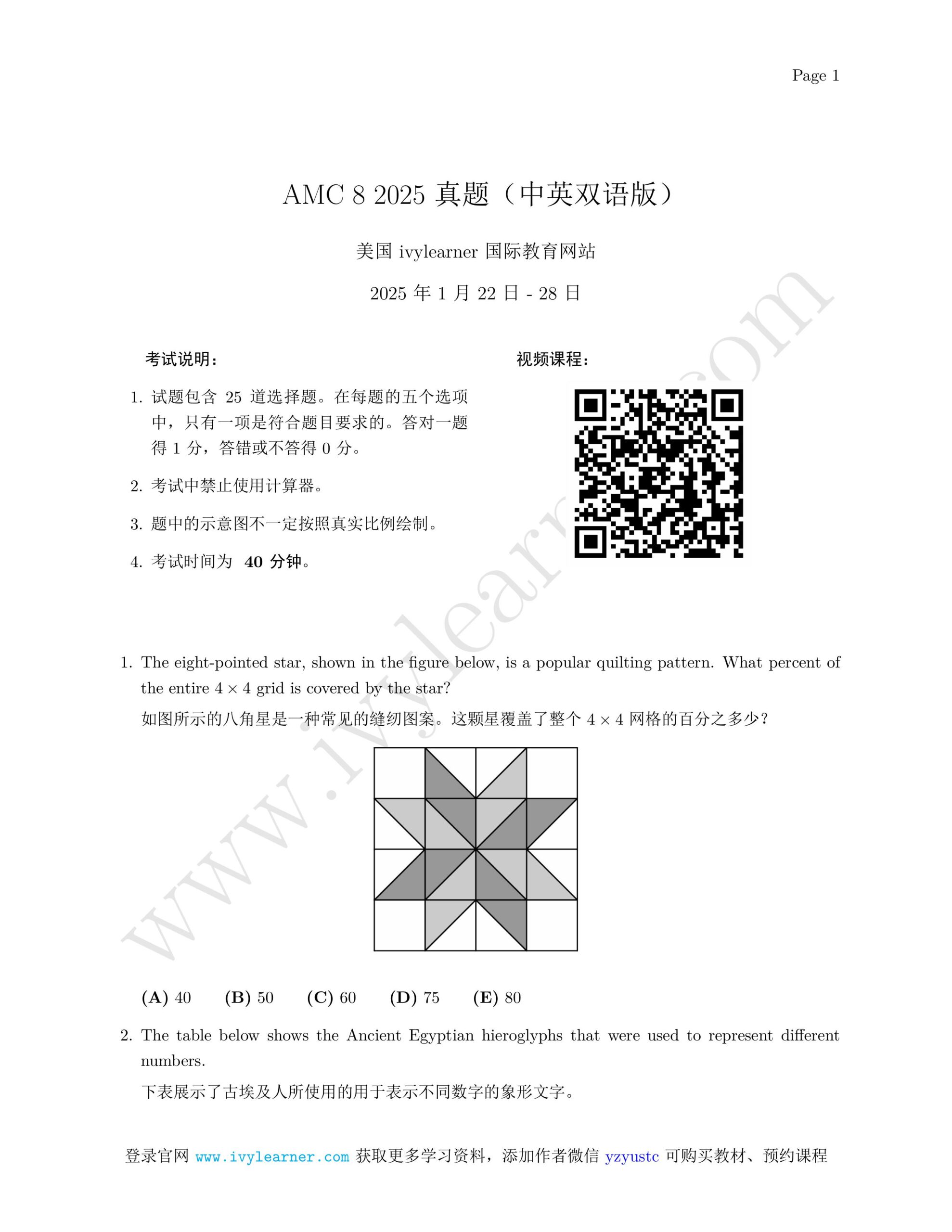 AMC 8 2025 真题中英双语
