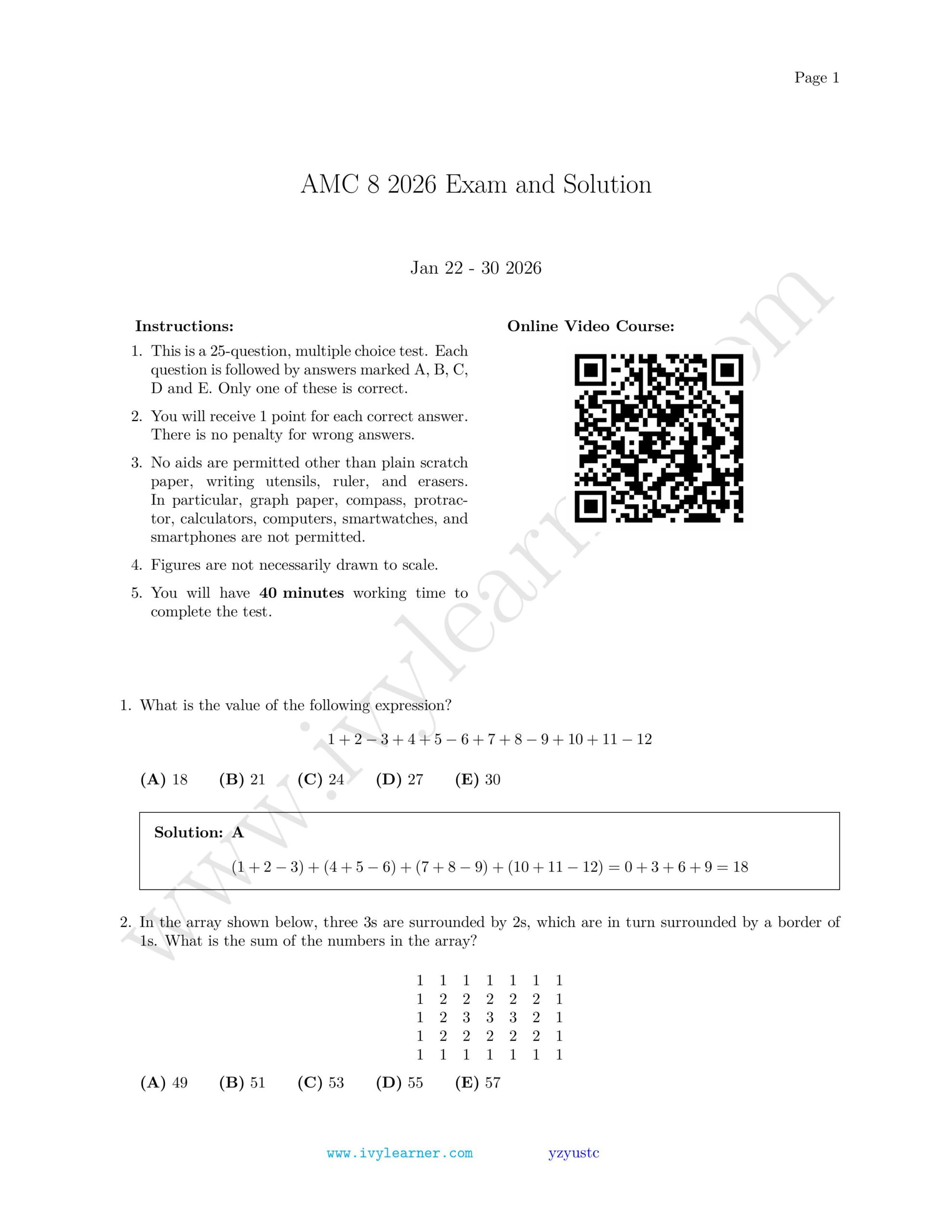 / AMC 8 2026 Exam and Solution